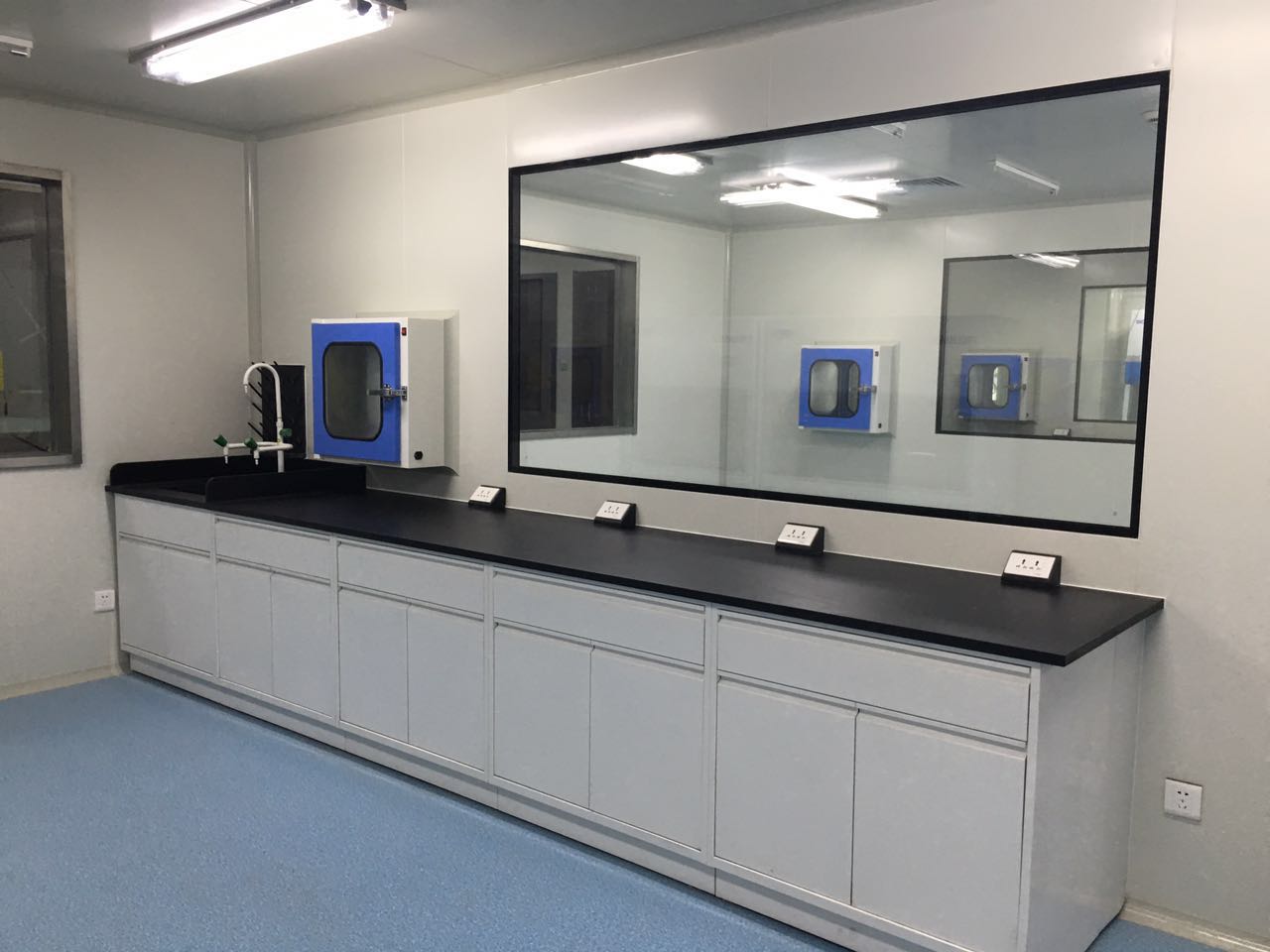 天平臺(tái)的臺(tái)面材料:酚醛樹(shù)脂復(fù)合貼面,表層1.0mm酚醛樹(shù)脂化學(xué)板;底面1.0mm酚醛樹(shù)脂平衡板; 基材12+12+12(mm)中纖板復(fù)合成39mm;三種材料復(fù)合粘壓總厚度40mm;臺(tái)面周邊采用PVC專用封邊材料封邊。